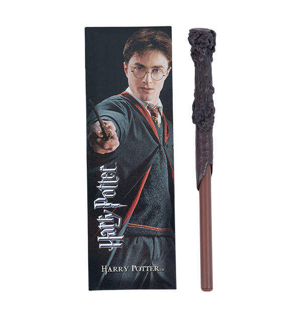 Wands at the ready! Add a little bit of magic to your stationery collection with this Harry Potter pen and bookmark set. The unique set includes a miniature version of Harry Potter's wand in a pen design, and a bespoke bookmark which features a picture of Harry Potter from the Harry Potter film series. In the bookmark image of Harry, he is wearing his grey Gryffindor jumper with scarlet red and yellow stripes, the traditional colours of the Gryffindor house.