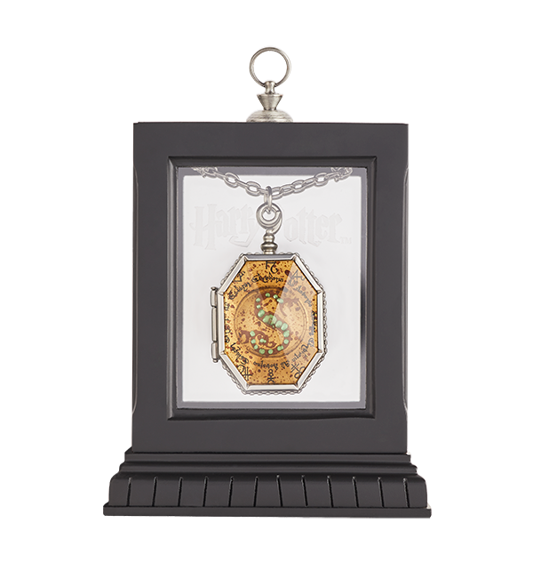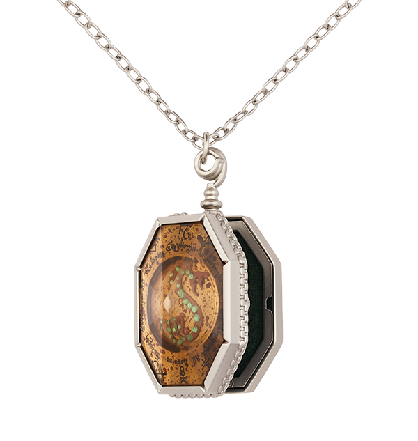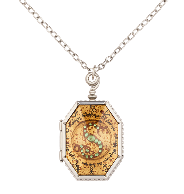 Take home this replica of Salazar Slytherin's locket, which was destroyed by Ron Weasley using the sword of Gryffindor in Harry Potter and the Deathly Hallows Part 1. This Horcrux Locket opens via a small clasp on the side and has been designed with a unique green gem embellishment in the shape of an 'S', representing the Salazar Slytherin.
