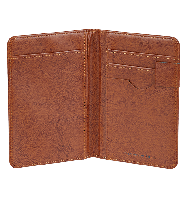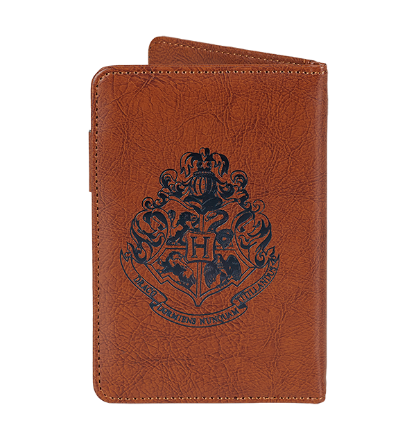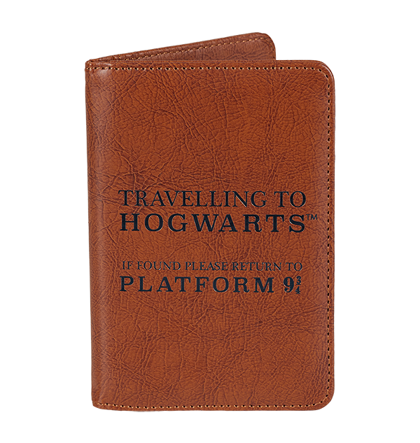 Add a little extra magic to your journey when you travel with this faux leather passport holder. This Harry Potter passport holder bears the phrase "Travelling to Hogwarts. If found please return to Platform 9 3/4" in bold text on the front, with the Hogwarts school crest embossed on back.