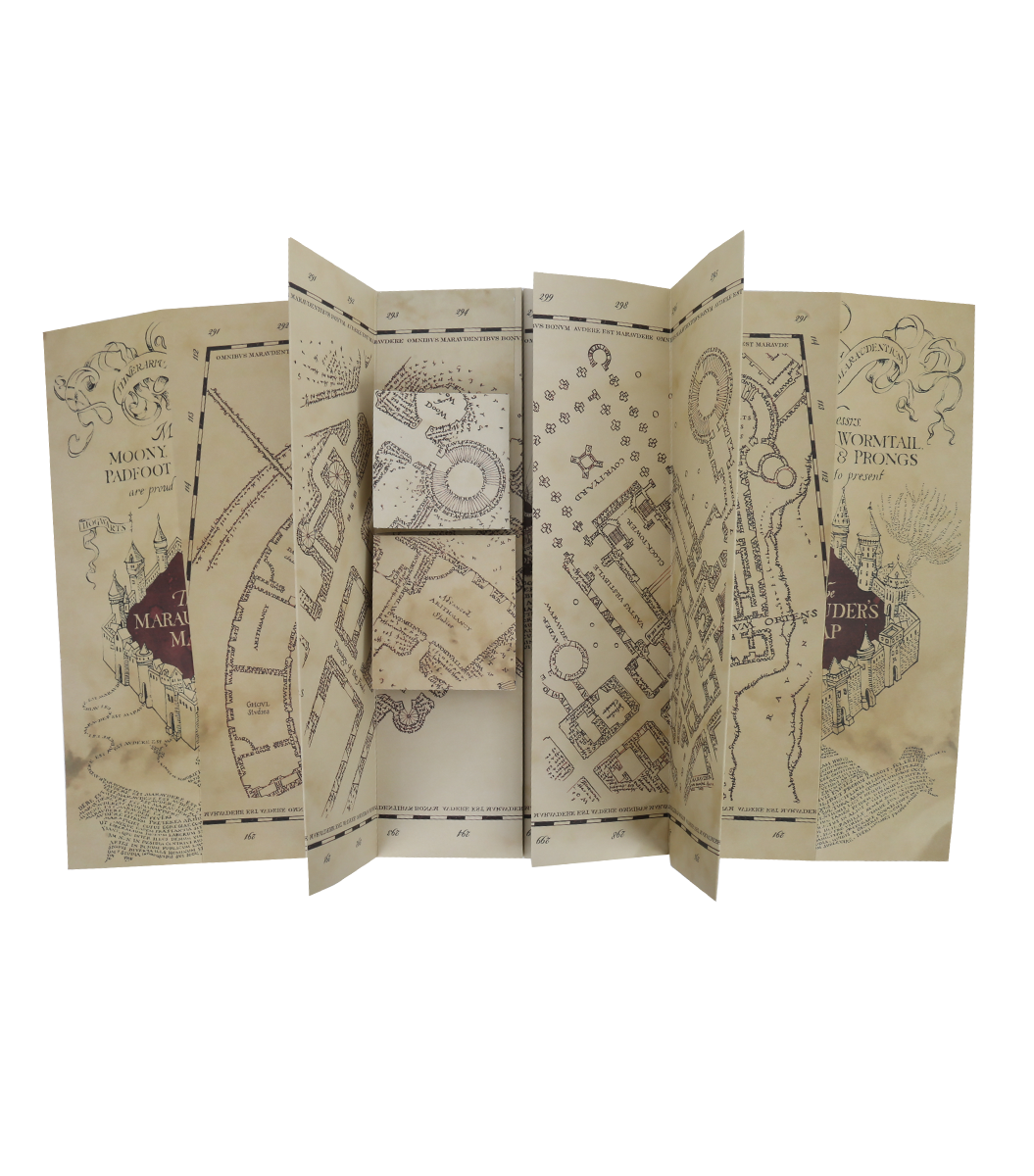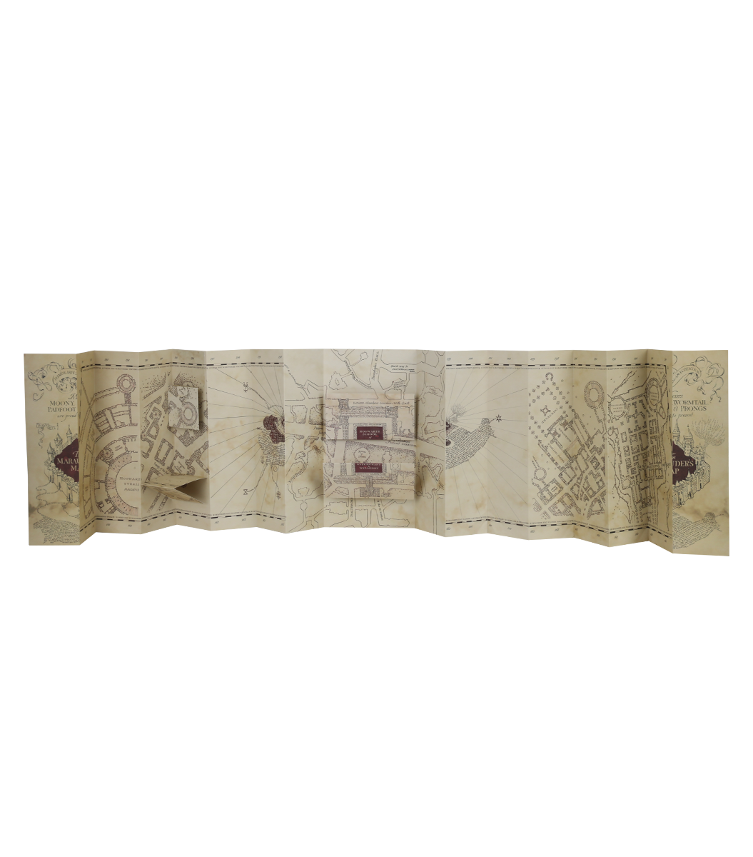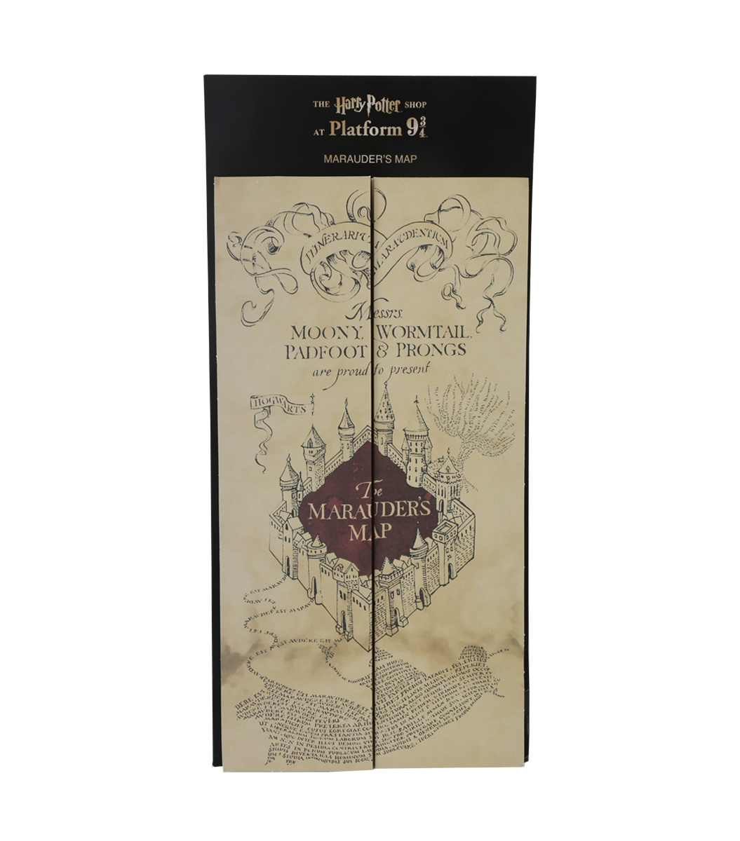Navigate your way around Hogwarts School of Witchcraft and Wizardry with this Marauder's Map replica, exclusive to the Harry Potter Shop. The map was created by Moony (Remus Lupin), Wormtail (Peter Pettigrew), Padfoot (Sirius Black), and Prongs (James Potter) and first appeared in Harry Potter and the Prisoner of Azkaban.